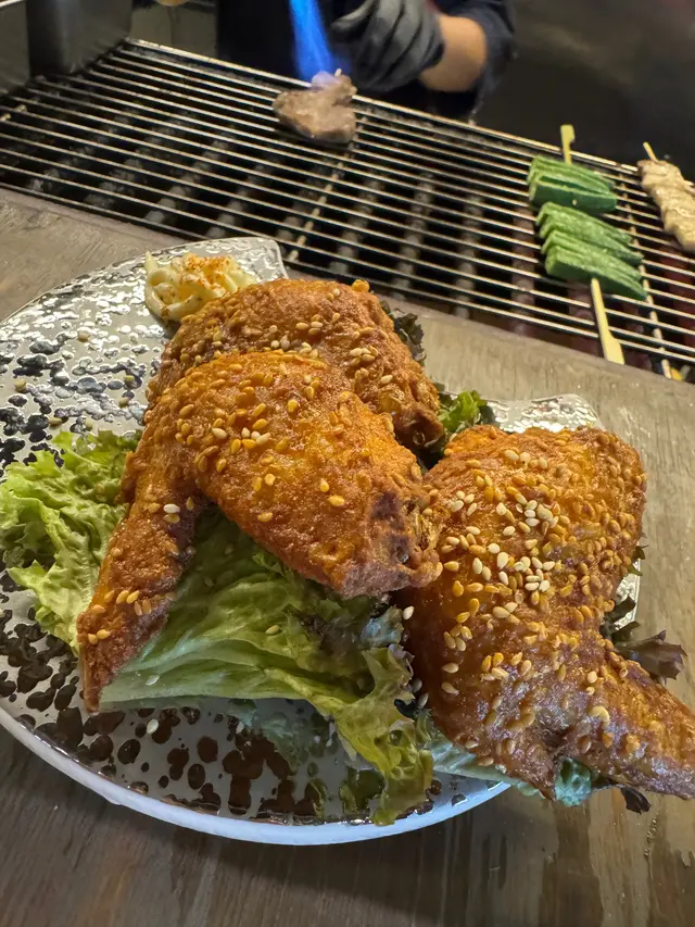 最驚豔是芝麻雞翼!!撕開脆皮時熱氣裹著芝麻香撲面,肉汁精準鎖在蝴蝶開背的骨縫裡!