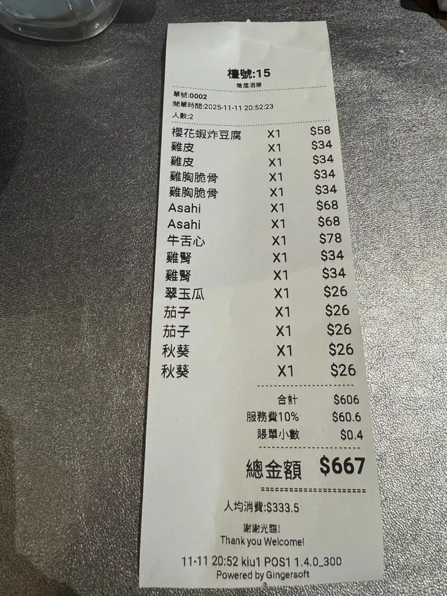 埋單人均$300有找,炭火功架直逼高價Omakase,每張桌都在續杯笑鬧。這裡沒有米其林光環,但有讓人想偷師廚師炭火控制術的魔力!