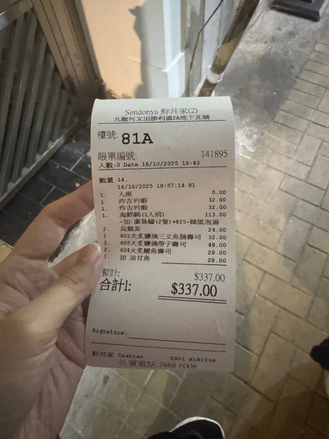 另外,炸蝦也是必試的選擇,外脆內嫩,搭配微辣的美乃滋,口感非常搭配。飲品方面,選擇了荔枝烏龍茶,清新解膩,完美平衡整餐的豐富口味。總體而言,鮮井家的性價比高,適合海鮮愛好者,服務態度一流,值得再訪!