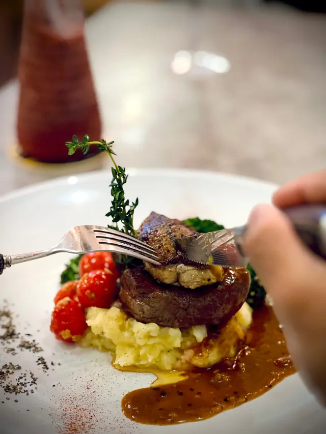 個人極力推薦,8安士牛柳熟度控制得好好😌肉汁全部鎖住,鵝肝煎得好香滑而且唔會出現反油,薯蓉夠香夠滑,連蕃茄仔都粒粒新鮮飽滿,擺盤都好心思,$238 絕對係益街坊價錢!
