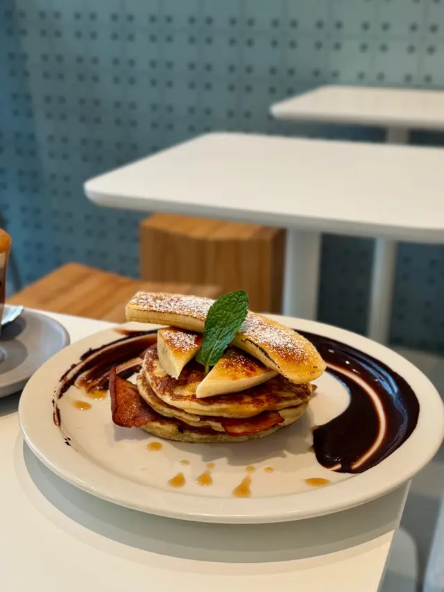 𝑃𝑎𝑛𝑐𝑎𝑘𝑒底比較薄身、煎得有點乾🫡個人不是非常喜歡、但焦糖香蕉加分!