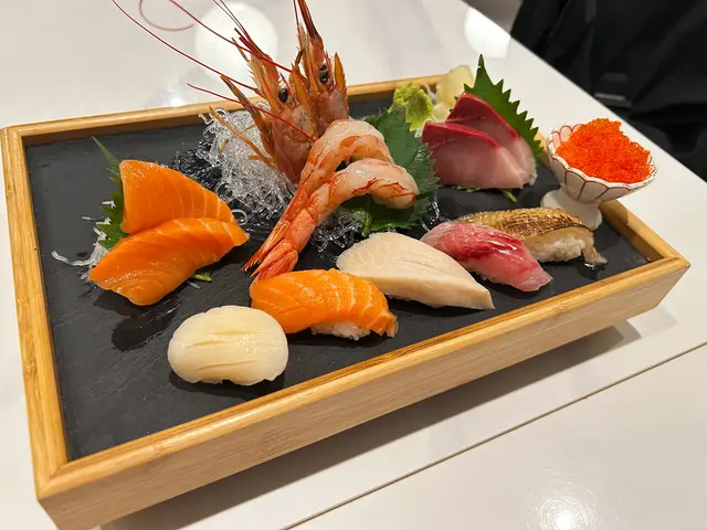 首先上桌的是精選拼盤,這道菜的刺身部分包括三文魚、油甘魚和赤蝦。三文魚的油脂豐富,入口即化,鮮美的味道令人陶醉;油甘魚的肉質則清爽,帶有淡淡的海味,讓人感受到大海的清新。赤蝦的甜味濃郁,彷彿在口中綻放,令人一試成主顧。壽司方面,深海池魚的鮮美、赤鯛的細膩以及左口魚邊的獨特風味,讓整個拼盤的層次感更加豐富,每一口都充滿驚喜