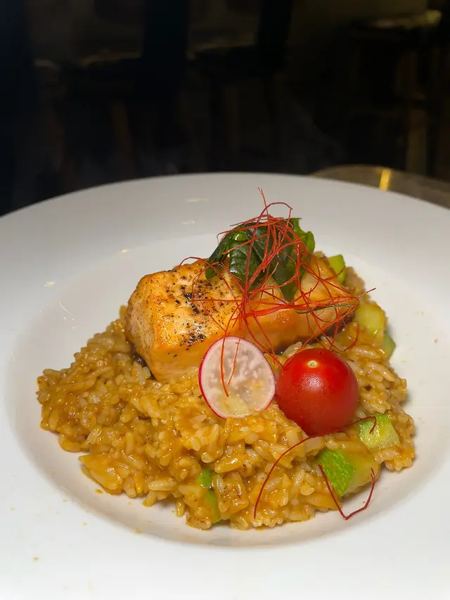 三文魚柳煎得好香脆~冬蔭味意大利飯配翠肉瓜