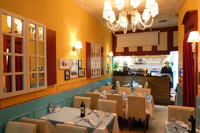 一入到室內,用湖水藍配橙黃色基調就似法國小鎮嘅餐廳,