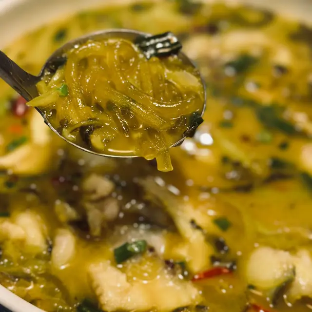 粉條好滑溜彈牙,吸晒湯底的味,真係同酸菜魚好搭。