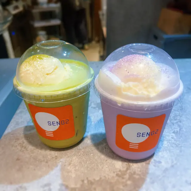 紫薯鮮奶,天氣太熱加多球雪糕。雪糕是雲呢拿口味,入口有少量紫薯顆粒,唔知喺咪加了雪糕的緣故,顏色是夢幻的紫色呢。