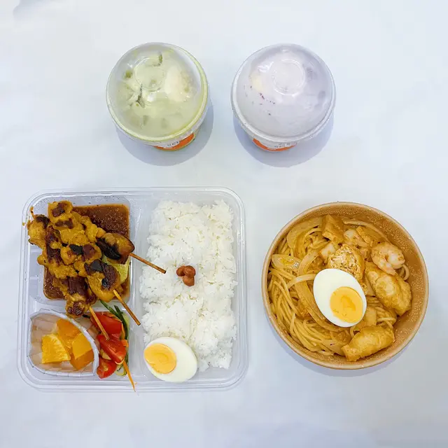 沙嗲醬自家製造,花生味濃,香甜不辣,雞肉亦比想像中易咬。配料有三串雞肉串、烚蛋、沙律、和水果,整體顏色和營養配搭得宜。