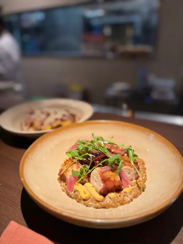 ✅✅Poulpe Grille. 原條八爪魚烤得好軟熟,唔韌但保持嚼口👍🏻 當日唔係餐牌上雪的烤薯仔,反而變左薏仁的物體,飯的樣子,但咬落韌韌的,係洋薏米,幾得意🥳蒜泥蛋黃醬加上茴香,令成碟的調味重返小小,帶出記憶點😋