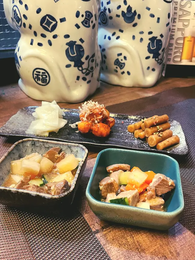 三點包括蒜頭漬、牛蒡醬油漬同蘿蔔漬。蒜頭口感結實,充滿蒜香及醬汁香味;牛蒡食落好爽口;蘿蔔亦酸酸甜甜,厚度適中,作為前菜一流🥰