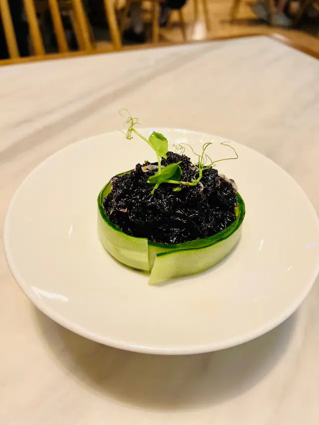 頭水紫菜薄脆如紙,拌上鮮香蝦苗與醋汁,清爽透鮮,作為前菜瞬間打開味蕾。