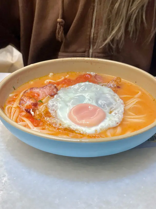 鲜茄烟鸭胸汤流心蛋扁意面 🦆鸭胸肉带着烟熏的气息和紧实的口感,给平淡的面条增加了意式的风味,酸甜清爽还挺丰富的