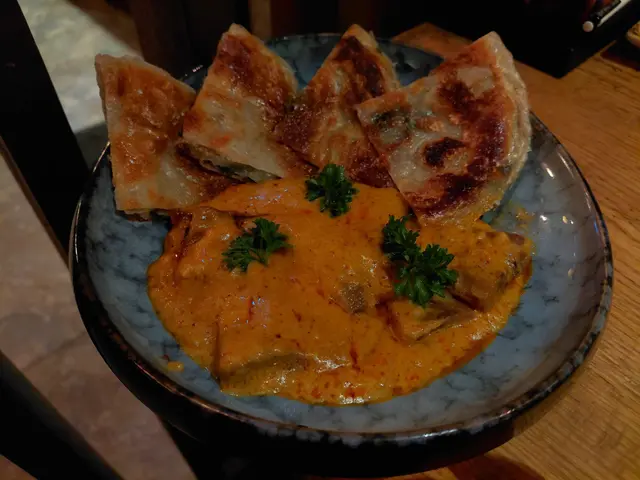 牛舌軟嫩,咖哩的香氣濃郁,手抓餅的口感也十分酥脆,讓人忍不住多吃幾口。