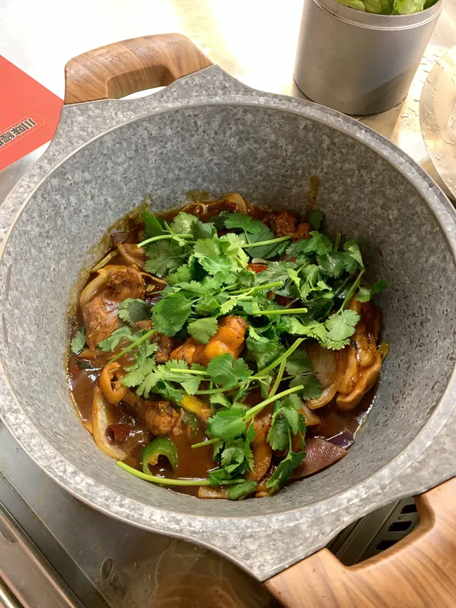 麻辣雞煲(跟餐$0),醬汁稠身,雞件份量多,容易掛汁,味道正宗。