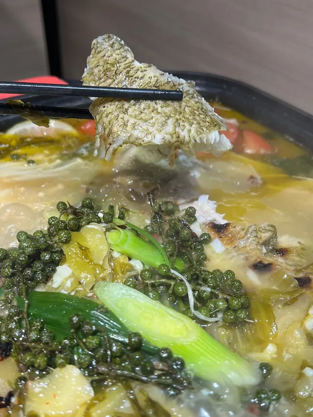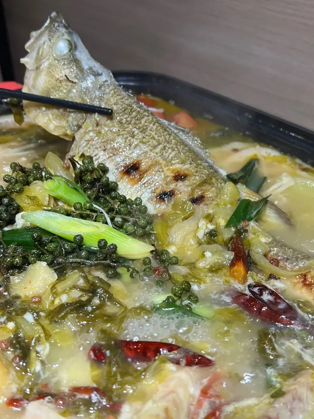 烤魚可以揀香辣或者酸菜湯底,我唔算食得辣,店員推介我哋食酸菜