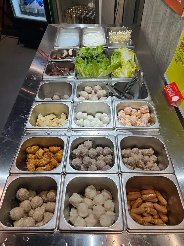 任食items 有肥牛、炸魚皮、丸丸、腸仔、出前一丁、烏冬、娃娃菜、生菜、金菇、冬菇……