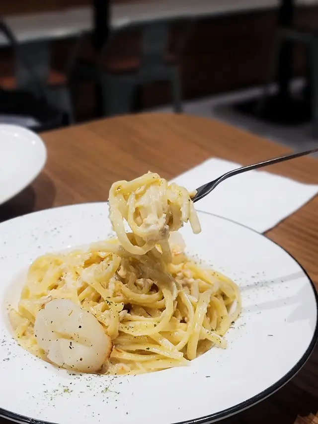 點咗羅勒白酒帶子蟹肉意粉🦀