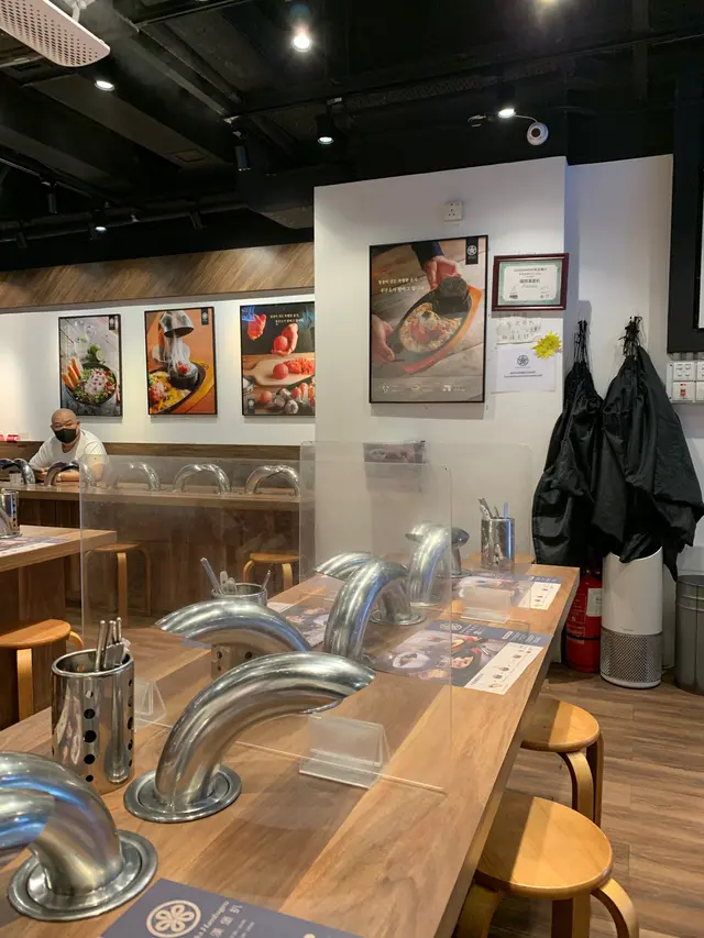甜甜地既菠蘿混入蛋中, 中間有一個女士握拳✊頭般大的牛漢堡扒, 上面有4片煙肉😋。有一個圓柱體熱石, 用黎煎漢堡。枱上面有個抽氣扇抽油煙 😁, 每次只需要煎3秒就反, 要幾熟/生, 自己決定😎。
