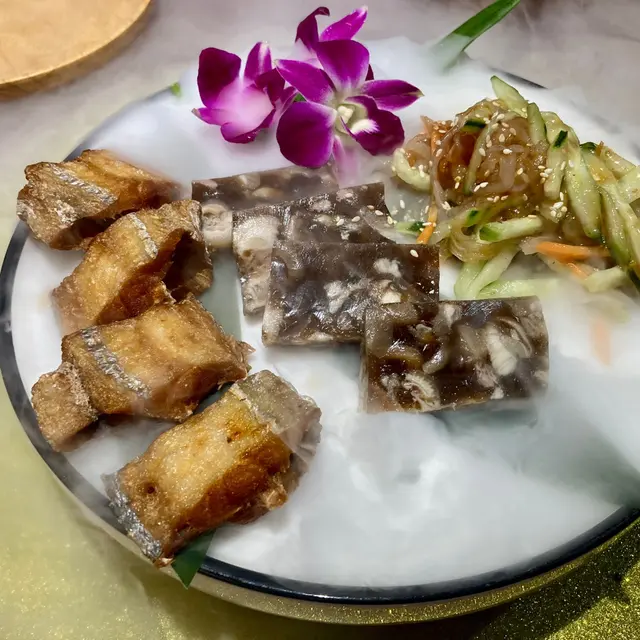 前菜方面,梅汁拌海蜇又酸又甜,讓人食慾大開;家鄉豬腳凍連醋吃會令人有驚喜;牙帶魚外皮煎得酥脆,內部卻保持著嫩滑和肉汁。