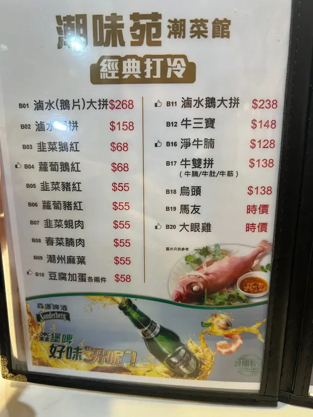 (⁎⁍̴̛ᴗ⁍̴̛⁎)潮式打冷。馬友 超好食 guinevereliu等级42025-03-30612 浏览 关注 今日去開長沙灣政府合署,就見到對面街有好吸引嘅潮式打冷,就入嚟試吓啦!滷水鵝片滷汁的香氣深入每一片鵝肉。搭配上花生和豆腐,增添了多層次的口感,讓人一口接一口,意猶未盡。鵝肉的油脂適中,不會過於油膩,十分適合與蠔仔粥一同享用。鎮店蠔仔粥這碗蠔仔粥是店內的招牌,粥底濃稠,米粒綿滑,搭配新鮮的蠔仔,蝦干碎和魷魚碎,份外鮮甜,與粥的香滑相得益彰,讓人忍不住多喝幾口。馬友$138潮式凍馬友凍馬友味道清爽,魚肉鮮美,口感軟嫩,老闆娘話係用新鮮馬友,所以魚油特別豐富,肉質更加鮮嫩!1336鵝片以上食记乃用户个人意见 , 并不代表OpenRice之观点。赞好分享(⁎⁍̴̛ᴗ⁍̴̛⁎)潮式打冷。馬友 超好食 潮味苑 https://s.openrice.com/QrLT0Z2HR00检举 张贴 评分5味道5环境5服务5卫生5抵食推介美食馬友$138鵝片用餐途径堂食