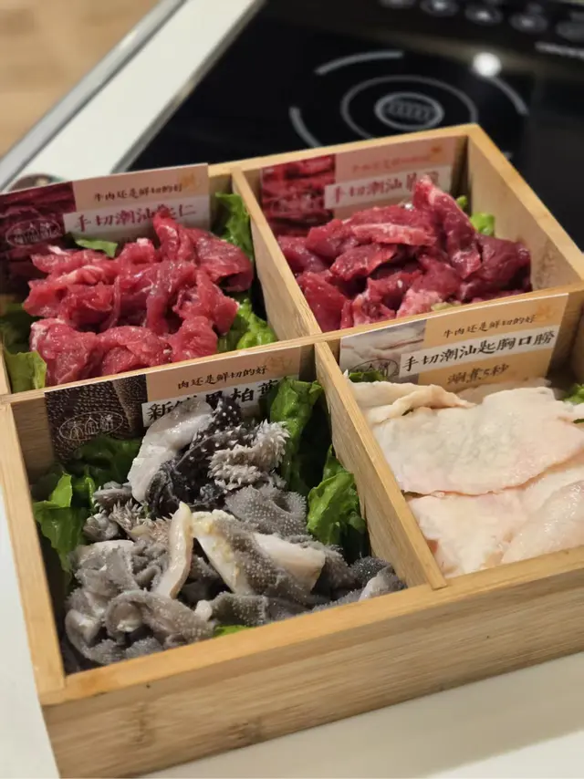 🥩必試招牌潮汕手切牛肉!有四款手切潮汕牛包括吊龍、匙仁、胸口爽、新鮮黑栢葉,仲貼心標註烹煮時間,新手都唔怕煮韌!