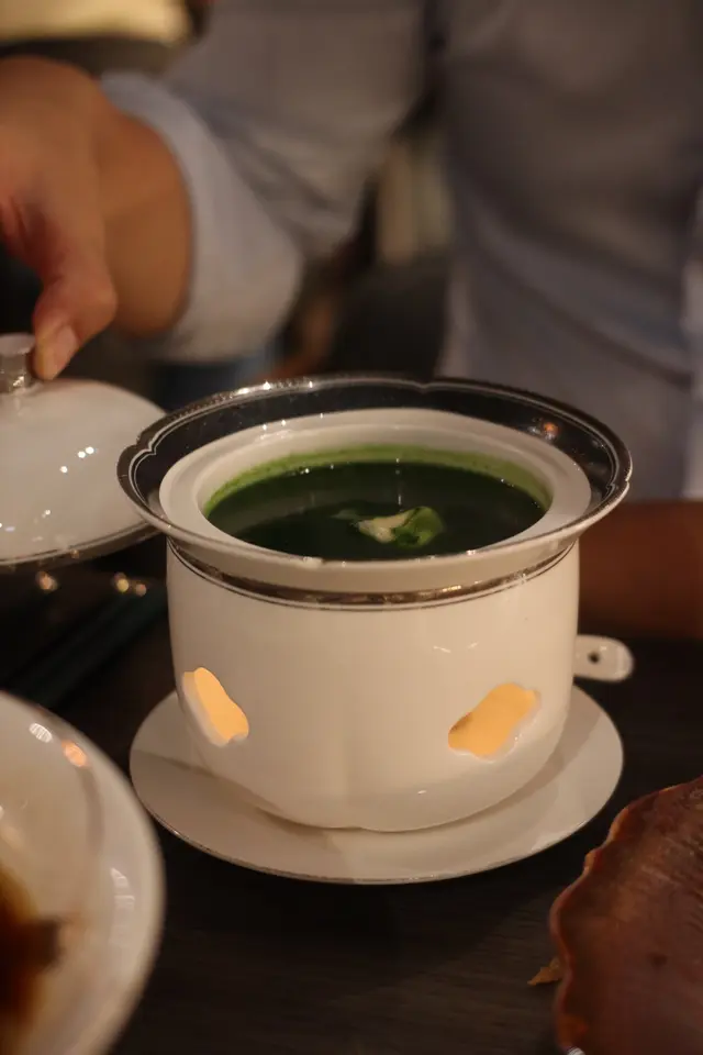 菜單上以新鮮時令食材為主,融合潮式元素,將美食與藝術完美融合。先來每人一客菠菜蟹肉羹,以鮮甜的蟹肉和嫩滑的菠菜製成,湯頭清新爽口;椒鹽白飯魚香酥可口,不油膩,滷水墨魚鵝片拼盤醬汁濃郁,墨魚肉質鮮嫩,充分吸收了醬汁的香氣和鮮味 。方魚炒芥蘭,方魚炸到金黃酥脆,芥蘭也維持了應有的脆嫩,鹹鮮香味交織