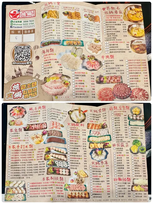 🔸總結:旅鍋的食材既新鮮又優質,而且選擇豐富,平日晚上到訪九成滿,建議大家到訪前,預先訂座;餐廳還有提供4間VIP 房,以泰國、日本、台灣及俄羅斯為主題,私隱度高,適合一大班朋友聚餐。
