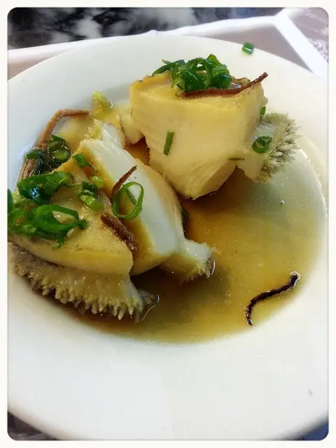 落單姐姐自己建議2個小朋友share一鮑魚,而大人一人一隻,怎料上菜時來了11隻。一家人只想開心食飯,所以並沒有再'探討'!大大隻鮑魚,跟西貢,三聖海鮮店的吃到的size簡直比下去!以為大大隻會好韌,怎料一刀切下已感覺到腍軟,放進口更是鮮甜爽口,很易咬開!連同陳皮絲放進口,陳皮甘香配上鮑魚鮮甜更是好味!推介!