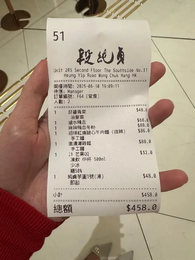 招牌紅燒腱心牛肉麵(微辣)$86