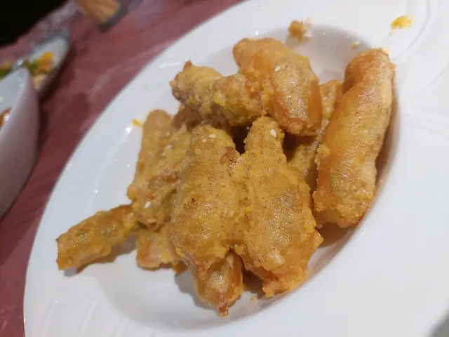 <金沙涼瓜條> {$58}😋 平時少食涼瓜怕苦既我, 都食左好多條涼瓜. 因為用左鹹蛋黃炸過, 脆卜卜, 有好香鹹蛋黃再帶點回甘香.