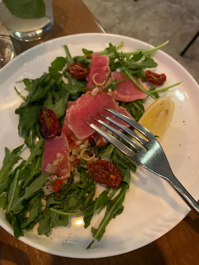 前菜 羅馬肉丸好特別唔同普通肉丸🐄🐖 混合左牛同豬肉 口感多層次 肉汁豐富 配搭酸甜番茄汁同芝士 邪惡得來又唔膩🤤 吞拿魚沙律嘅吞拿魚表面輕輕炙燒過🔥 燒香味十足 肉質鮮嫩 配埋火箭菜🍃番茄乾同酸甜醬汁 食落開胃又清新🥗