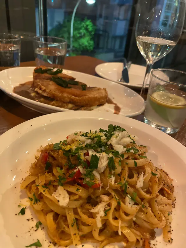 主菜 意式烤乳豬配薯蓉同蘑菇🍄乳豬外脆內嫩 薯蓉棉滑加上蘑菇 配搭好啱味🤤蟹肉意粉蟹肉十足🦀🍝 彈牙意粉配埋黑胡椒帶d辣好惹味🔥