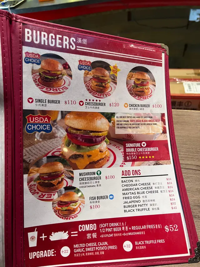 灣仔漢堡包店 Frances Yau等级42025-11-1339 浏览 关注 同朋友好耐無見,要嚟聚一聚,我地去左間burger 店,食完就去銅鑼灣行街~我地叫了漢堡套餐,有漢堡、薯條加飲品。⭐️芝士牛肉漢堡牛肉漢堡好濃郁牛香氣,食落好厚實多汁,個包食落鬆軟,芝士融化後包著個牛肉漢堡,好食。⭐️雞肉漢堡雞肉漢堡與牛肉相比,會比較淡味的,但有沙律醬提升返個味道。另外,雞肉嫩滑不乾,唔錯。⭐️薯條、黑松露薯條套餐原本係配普通薯條,係另加錢要黑松露味薯條。薯條剛剛炸起,所以好脆。⭐️ 薑汁汽水521以上食记乃用户个人意见 , 并不代表OpenRice之观点。赞好分享灣仔漢堡包店 Burger Joys (君悅居) https://s.openrice.com/QrLT0cYylW0检举 张贴 评分4味道4环境4服务4卫生4抵食用餐途径堂食