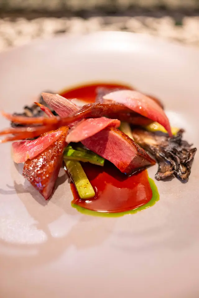 🕊️煙燻乳鴿:呢個真係鎮店之寶!用咗13種香料嘅滷水生浸過夜,風乾3日,再用香茅檸檬煙燻🌿。上菜前用沸油淋皮,做到皮香肉嫩!配埋昆布紅酒醋汁,酸甜解膩,好食到會為咗佢再嚟!💘