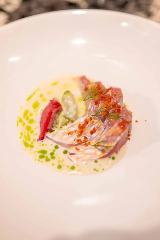 🐟金線鯛刺身:魚肉好鮮甜黏口,配薰衣草茴香醬同布冧醬,味道好有層次,仲有脆脆增加口感!🌺