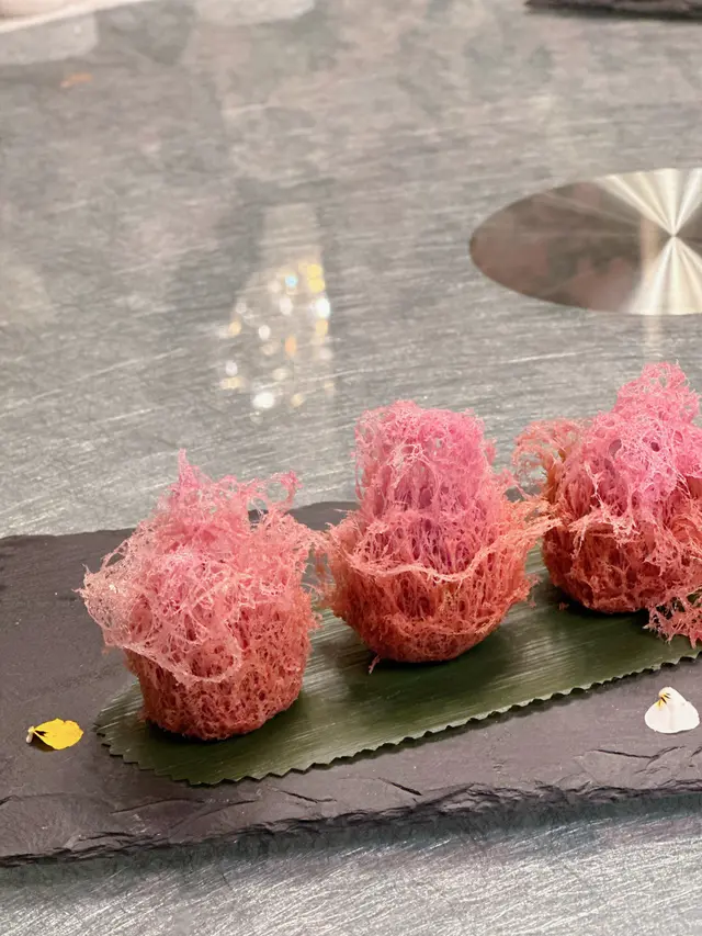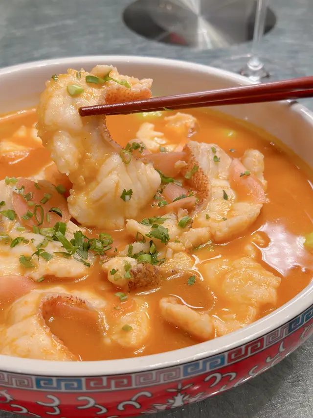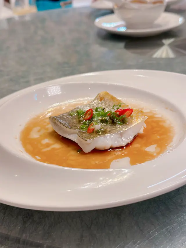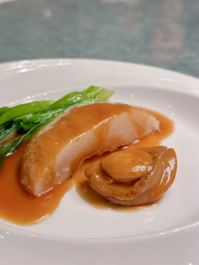取黃花魚中嫩滑既部分製作「鮮藤椒蒸本灣黃花魚」🐠; 「蠔皇鮑魚扣柚皮」係好有驚喜的, 據知呢充菜式係特別難做得好的。 師傅既製法係柚皮先經過炸, 再加入魚湯、蝦米🦐、 蒜子🧄煮成, 入口好冇苦澀味而能突今日柚皮嘅清香; 所用既南非鮑魚係信心保證🫶🏻