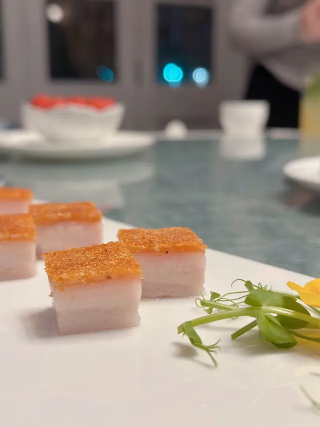「話梅甘草聖女果」🍅係相當出色既悅口小食, 恰到好處既酸度與話梅味道係好好既平衡, 令人食完一粒又一粒~😋層層分明既「脆皮黑豚腩」🐖既芝麻皮做得特別好