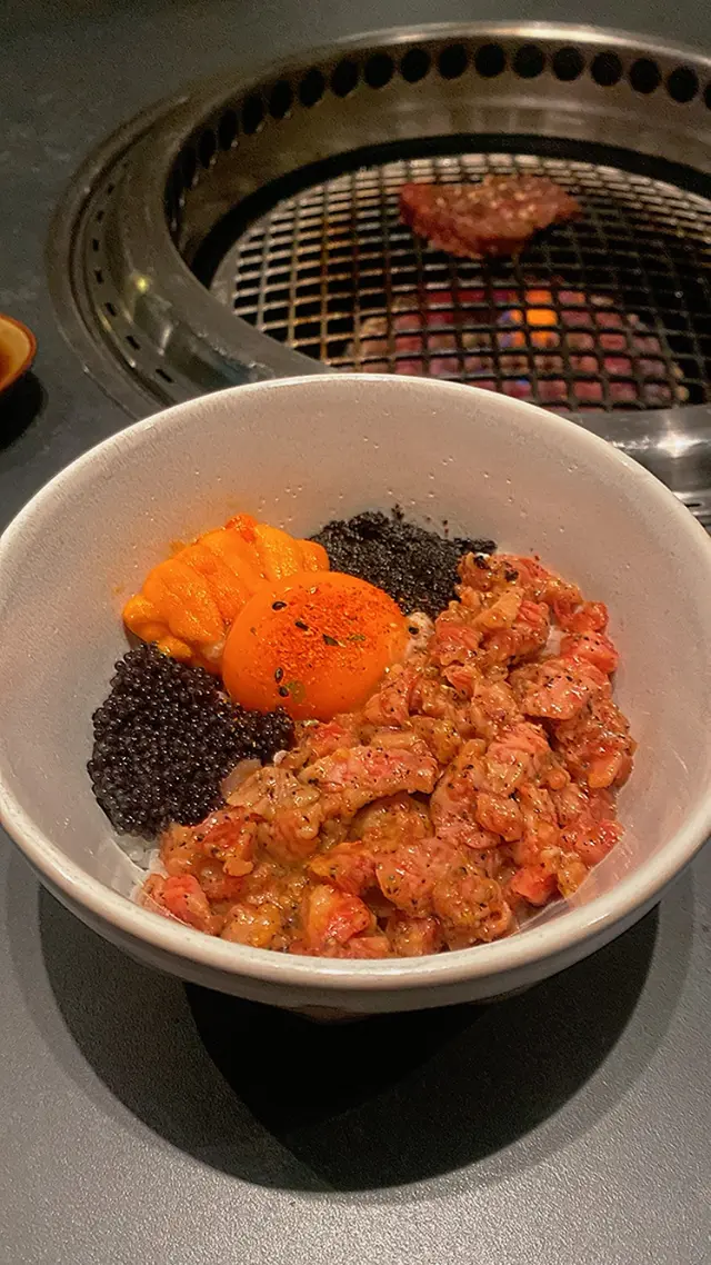 好浮誇嘅丼飯,黑松露魚子、海膽、和牛、再加埋雞蛋mix埋,豐富