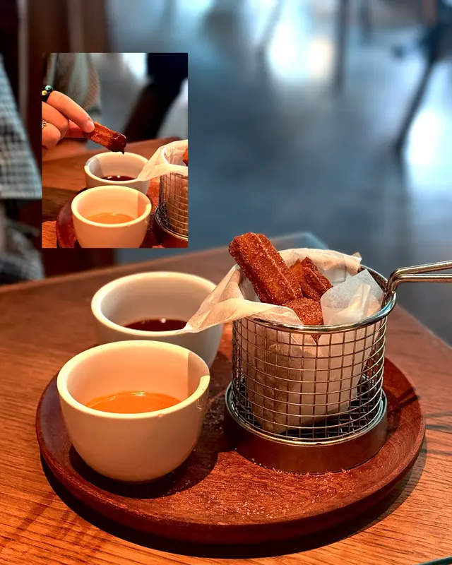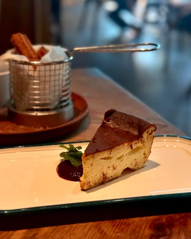 必食傳統西班牙甜品𝐂𝐡𝐮𝐫𝐫𝐨𝐬 即叫即炸,配濃郁朱古力醬或奶醬都好正,另外巴斯克芝士蛋糕流心嘅口感配酸香莓醬,食完好滿足!!!