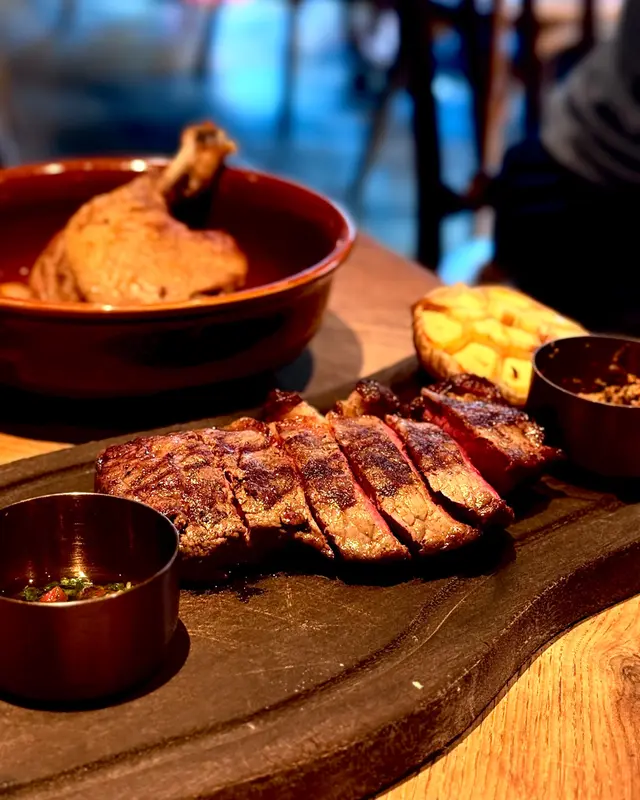 𝐎𝐫𝐝𝐞𝐫咗𝐌𝐞𝐝𝐢𝐮𝐦熟度,表面炭烤焦脆,切開肉汁澎湃,中心勁粉嫩超誘人!配烤蒜同大蒜紅椒醬,好滋味 ´͈ ᵕ `͈ ♡°◌̊