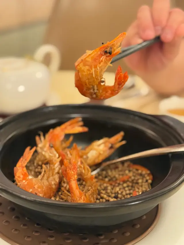 以中菜小炒最能感受到食材新鮮度與功架.【瓦罉焗胡椒蝦】一打開蓋白胡椒香氣撲鼻,蝦肉在瓦罉中吸盡白胡椒味道,蝦殼脆口,蝦肉爽彈.