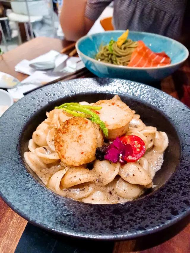 素帶子爽滑,貓耳朵粉每粒都裹滿黑松露醬,香口惹味