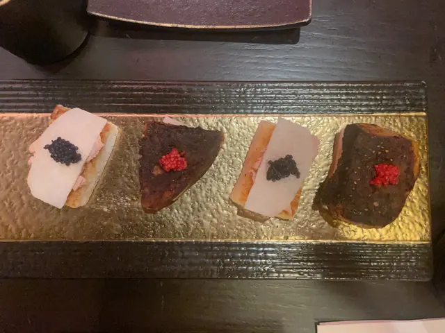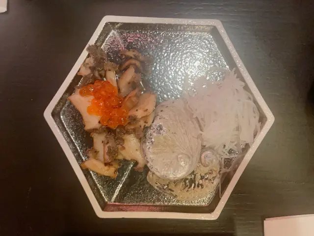 鮑魚好大隻,原隻切開,用鐵板微微燒香,口感仲係好爽嫩,再加埋啲三文魚子喺上面,雙重口感!