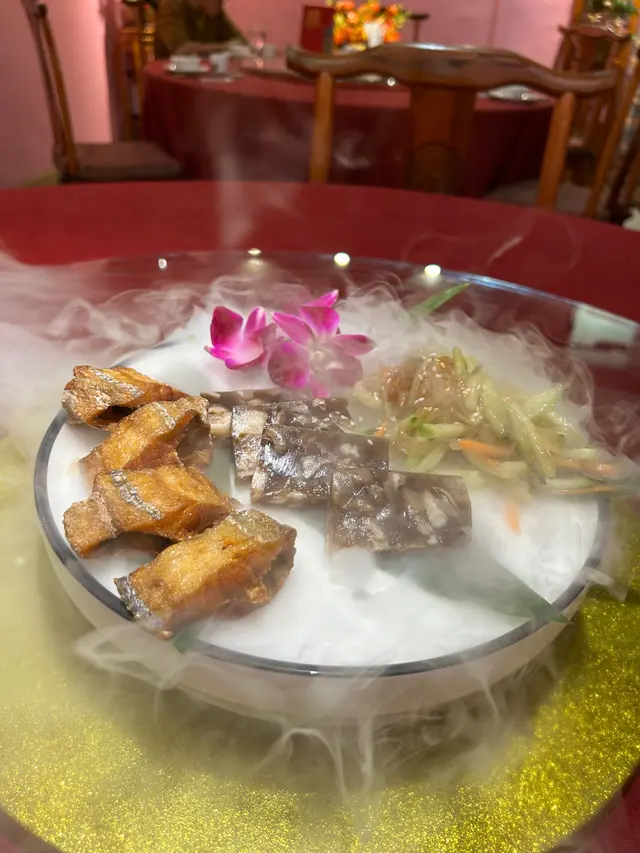 潮式拼盤:有燻牙帶魚,豬肉凍和海哲。魚肉滿煙燻的香味,久違了的味道。