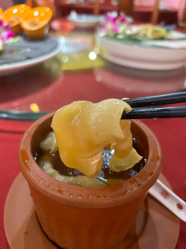 野生菌花膠湯 : 湯十分清甜,嘗到菇菌的香味而且營養價值高。