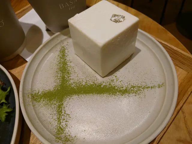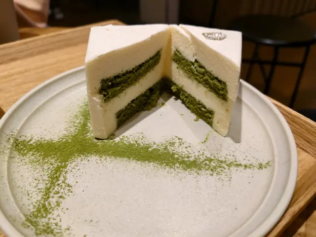 A flavourful matche chiffon cake wrapped in silky tufu mousse