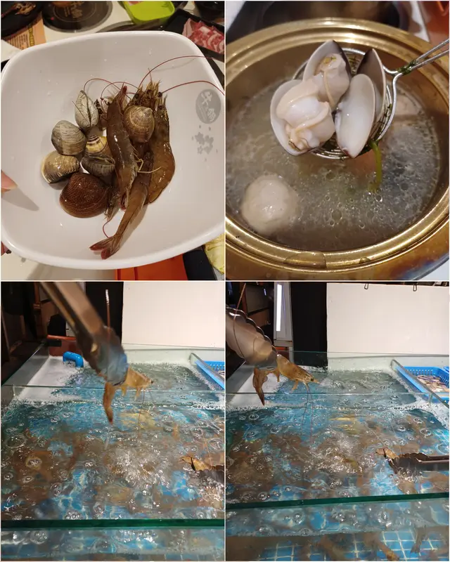 非常新鮮,蝦放入鍋中都要跳出來了,肉質鮮甜爽脆,大蜆非常肥美。