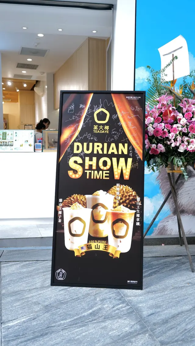 在鮮椰貓山王的基礎上加入了烏龍茶。茶味讓榴槤和椰奶的甜度更平衡,口感也更加解膩!