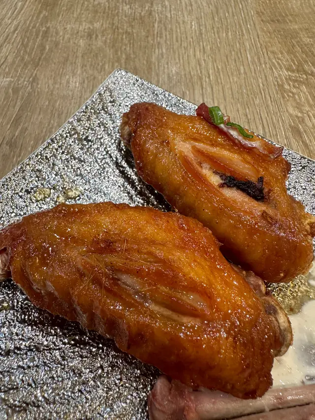 三隻雞翼,㕑子在中央部分𠝹一刀,做了手腳更入味,底味吸引,點點蜜糖,剛剛烤出來熱騰騰,有點燙咀,就像去BBQ花了許多心機去燒的感覺一樣,單是吃這雞翼,已吃出那份誠意。