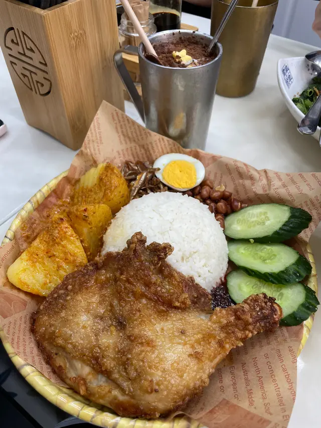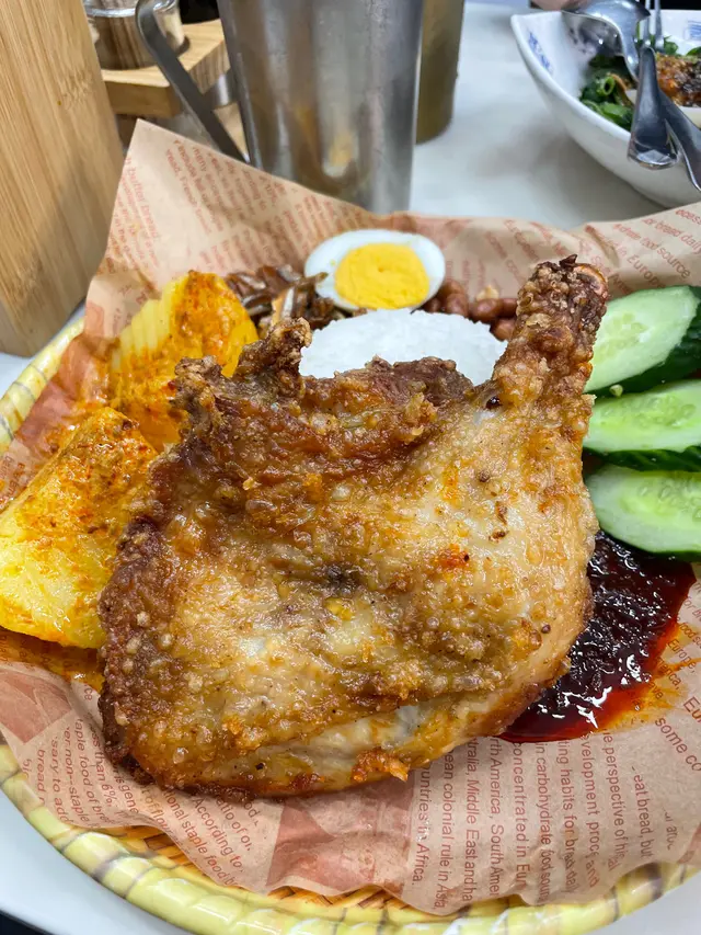 炸雞髀好大隻,炸得香脆!泛類都有好多款選擇,雖然我哋只係揀咗白飯,但係其實有得揀椰漿, 飯黃薑飯, 蝶豆花飯等等~