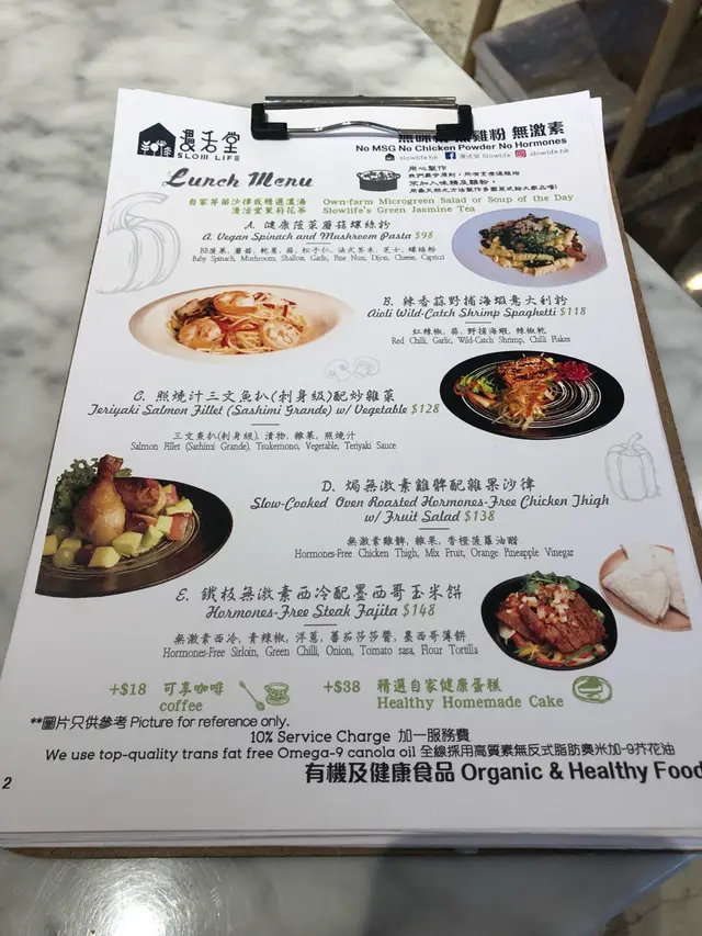 無味精無雞粉無激素的午餐 為食fatcat等级42019-06-03377 浏览 关注 這餐廳標榜食物無味精無雞粉無激素,今天就來吃過健康午餐。我點的是辣香蒜野捕海蝦意大利粉,朋友點的是照燒汁三文魚扒(刺身級)配炒雜菜。午餐包括自家芽苗沙律或餐湯,另有漫活堂茉莉花茶,另加$18可享咖啡,加$38可享自家健康蛋糕。我們都選擇了沙律,沒加咖啡及蛋糕。沙律很新鮮,上有少許三文魚,味道不錯。至於海蝦意大利粉,老實說,很久沒吃過這麼有蝦味又彈牙的海蝦了,食得出是高質素的食材,意粉味道也不錯。朋友選的三文魚扒生熟度剛剛好,魚肉很嫩滑。至於茉莉花茶,我們就覺得茶味略淡。這食店除了是餐廳,還有很多健康食品出售,若不趕時間,吃完午餐後還可以購購物。以上食记乃用户个人意见 , 并不代表OpenRice之观点。1分享無味精無雞粉無激素的午餐 Slowlife 漫活堂 https://s.openrice.com/QrLT0z2IQ00检举 张贴 评分5味道4环境4服务4卫生3抵食用餐途径堂食人均消费$135